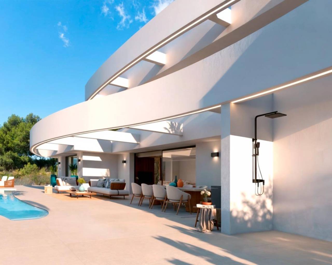 If you dream of living in a home with breathtaking 180º views of the sea and the iconic Peñón de Ifach, this exclusive project in Calpe is perfect for you. This villa has been designed to maximize natural light and Mediterranean panoramas, thanks to its south-facing orientation.. . With 258 m2 of built area, this spectacular property features 3 bedrooms, 3 bathrooms, and a spacious living-dining area with an open-plan kitchen, perfect for enjoying every moment with unbeatable views. The outdoor area offers an elegant private pool and spacious terraces, ideal for relaxing and admiring the scenery.. . An exclusive home in one of the most privileged areas of Calpe, designed to offer luxury, comfort, and an unparalleled connection with nature.. . ✨ Key Features:. ✔ Built area: 220 m2. ✔ South-facing plot with panoramic views. ✔ 3 bedrooms and 3 bathrooms. ✔ Living-dining area with open-plan kitchen. ✔ Private pool and spacious terraces. ✔ Modern and exclusive design. . Don't miss the opportunity to make your dream of living in a luxury villa on the Costa Blanca a reality. Contact us for more information or to schedule a visit.