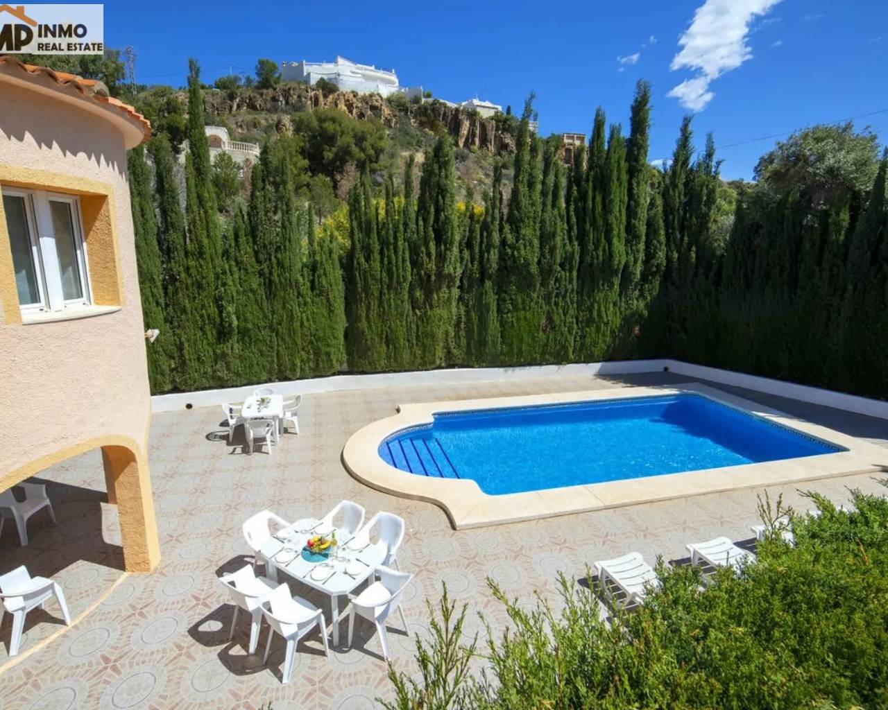 Descubre esta bonita villa de 2 plantas situada en la exclusiva urbanización Maryvilla, en Calpe, a tan solo 1,5 km de la playa de Puerto Blanco y a 4 km del centro urbano. Esta propiedad combina confort, privacidad y estilo en un entorno residencial tranquilo.. La villa cuenta con 6 dormitorios y 2 baños, ideal para familias numerosas o para quienes buscan una excelente inversión ya que dispone de licencia turística. Disfruta de amplios espacios exteriores, incluyendo jardín, terraza, barbacoa y piscina privada, perfectos para relajarse o recibir invitados.. Otras comodidades incluyen lavadero, trastero, aire acondicionado, y 3 plazas de parking. Desde la villa se pueden contemplar hermosas vistas a la montaña, garantizando un ambiente de total tranquilidad y privacidad.. Esta propiedad representa una oportunidad de inversión única en una zona residencial muy demandada de Calpe. No pierdas la ocasión de vivir cerca del mar con todas las comodidades que mereces..